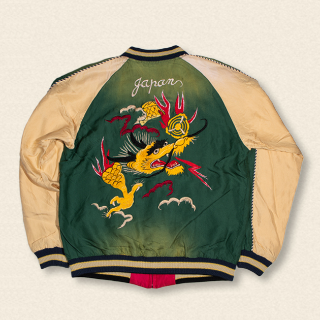 日本発祥の”洋服”として広く認知されているスカジャンは、戦後まもなく日本に駐留していた米軍兵士が来日の思い出に龍・鷲・虎などのオリエンタルな図柄や所属していた部隊名などをジャケットに刺繍したのが始まり。