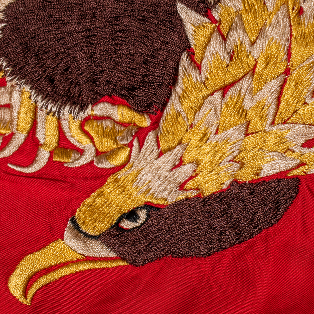 スカジャンの代名詞である刺繍はレーヨン糸で施され、立体感とダイナミックな絵柄を表現しております。