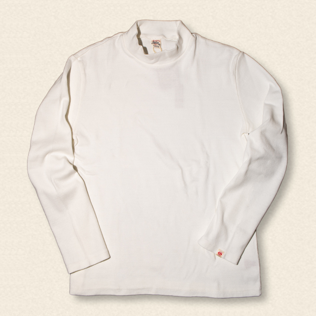 16番手の糸を使用したモックネックTシャツ。
