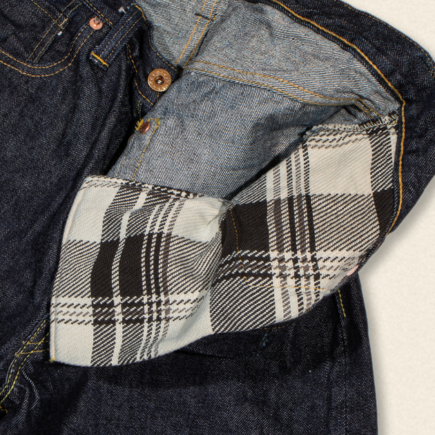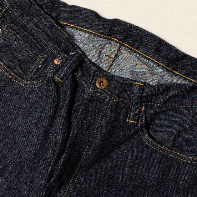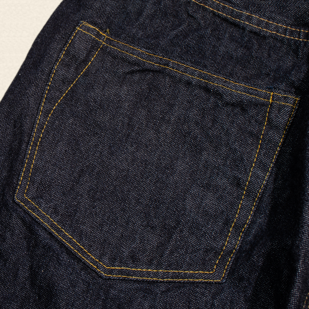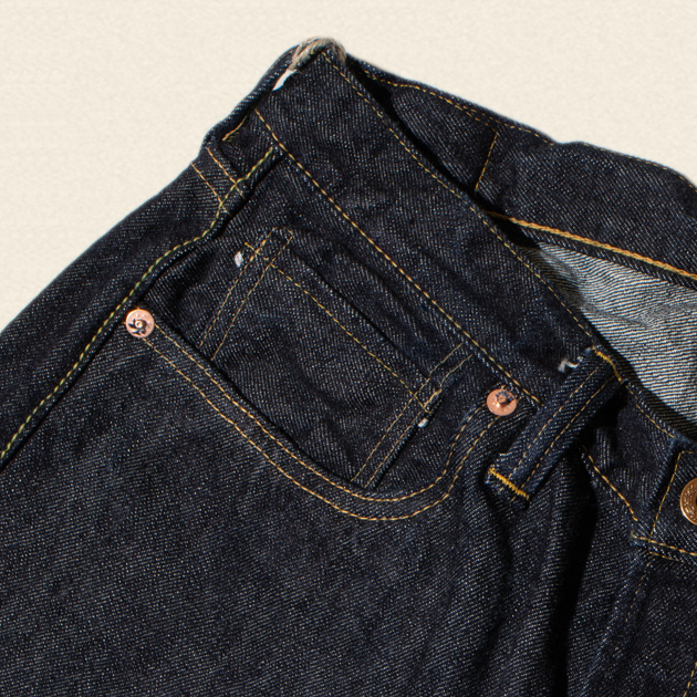 コインポケットのリベットの省略、いびつな縫製が大戦モデルの雰囲気を高めます。