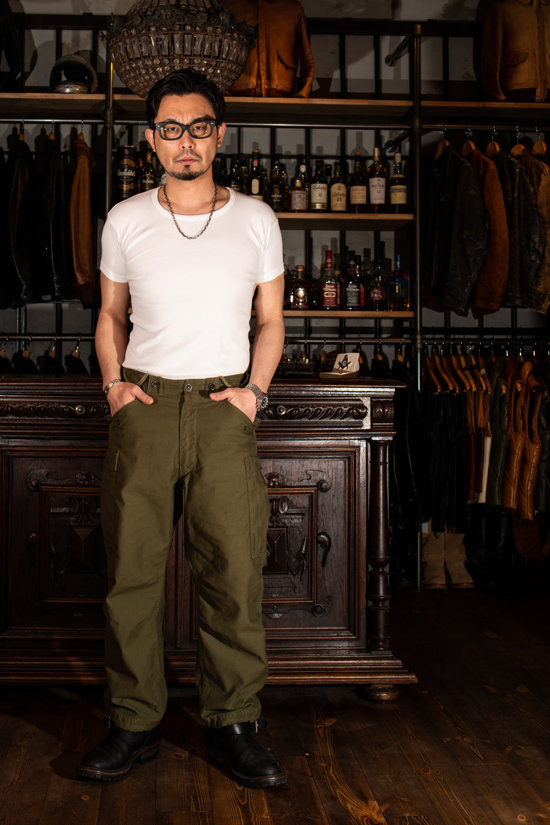 だからと言ってシャツアウト出来ないかと聞かれると、そんな事はなく、程好い胴回りのフィット感によってスソ末端がだらしなく開放される事はありませんので、このT-Shirts一枚で着用いただくのも良い感じです。