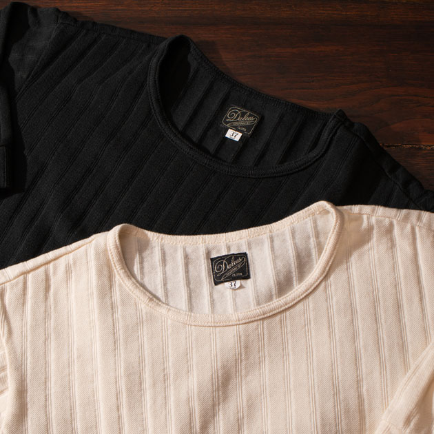裾にはデラックスウエア デバイスニットシリーズを示す、「Russel」タグが付きます。