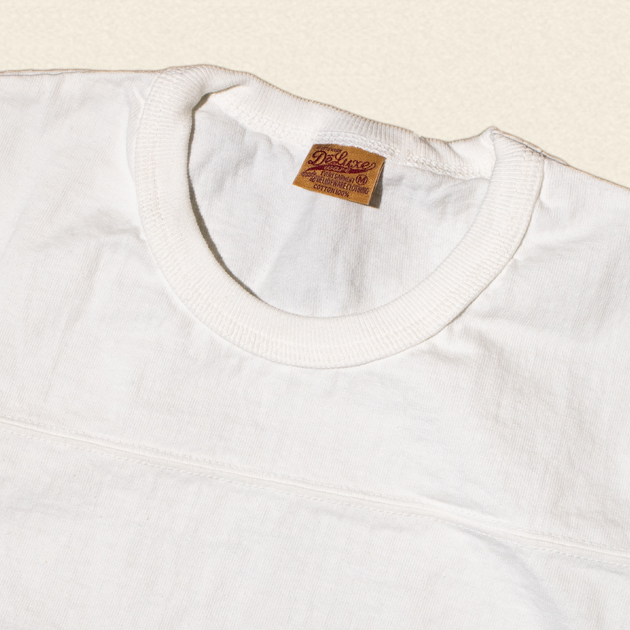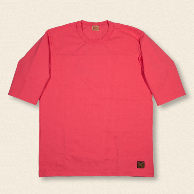 詰まった襟巾と6分袖が往年のフットボールTを彷彿とさせます。