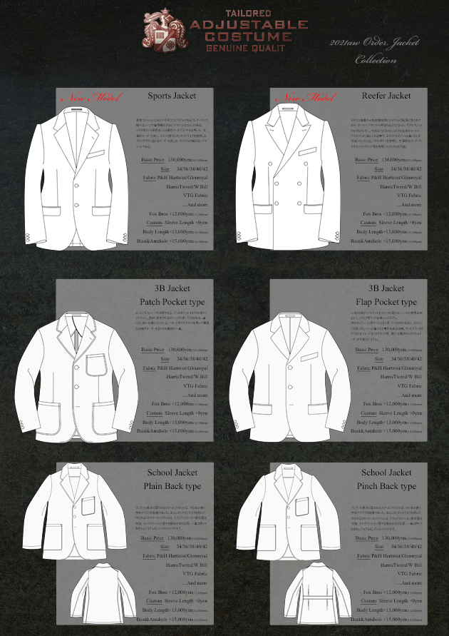 さらに今回は先に御紹介いたしましたブレザー型に関しても、カスタムオーダーのベースモデルとして組み込まれております。