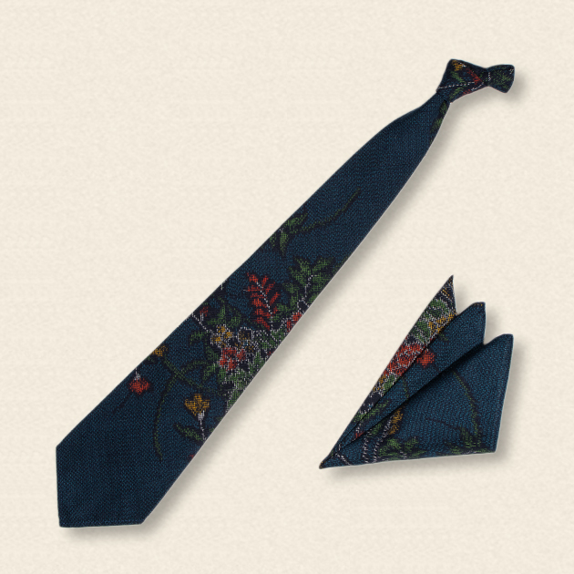 KIMONO VINTAGE FABRIC TIE & SQUARE 花絣