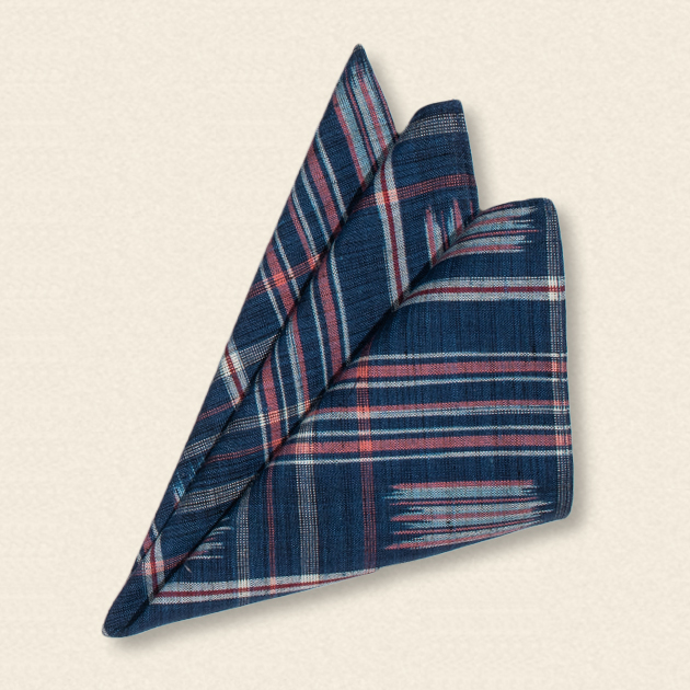 KIMONO VINTAGE FABRIC TIE & SQUARE 絣格子