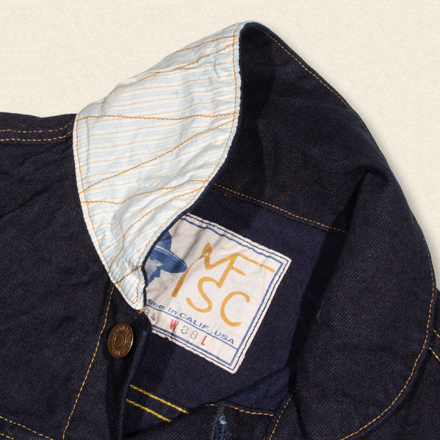 襟裏とポエットフラップ裏にはNOS(New Old Stock)のストライプ生地を使用しております。
