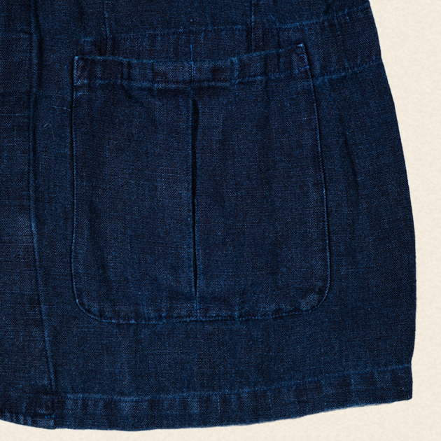 所々に曲線を取り入れたデザインと藍染の深みのある発色は上質なワークを演出します。