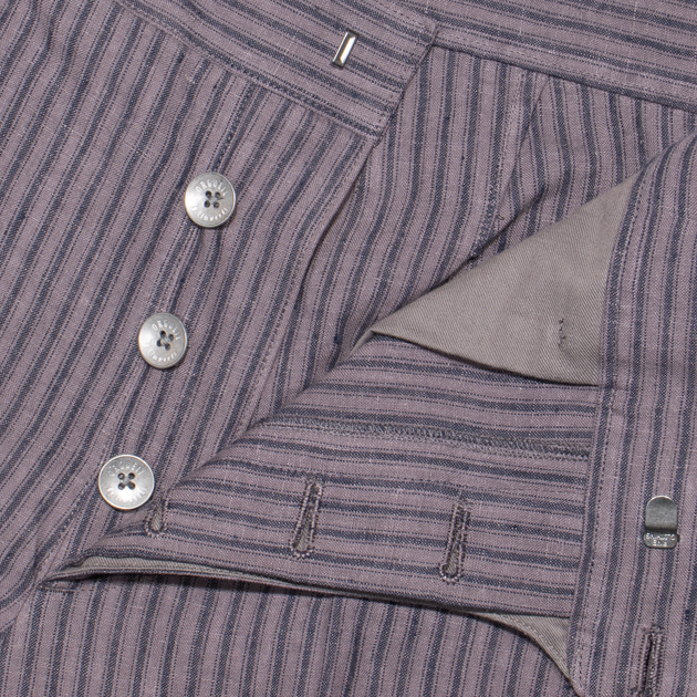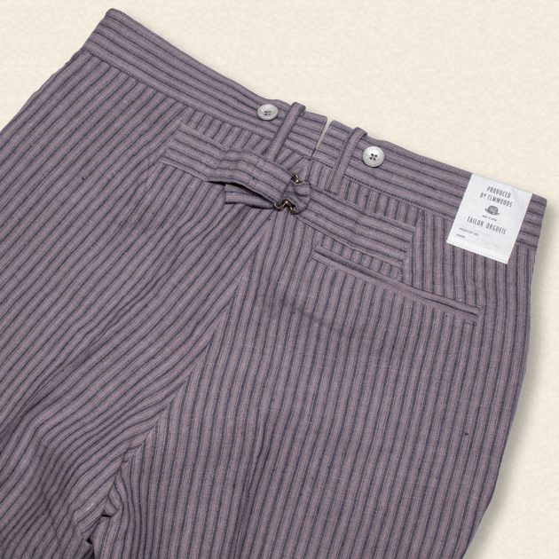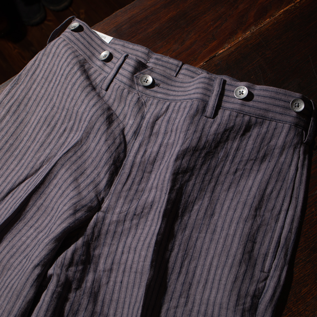 ストライプが目を引くこちらのパンツは元々スウェーデンのPrizoner(囚人)達が着用していたものをベースに制作しております。