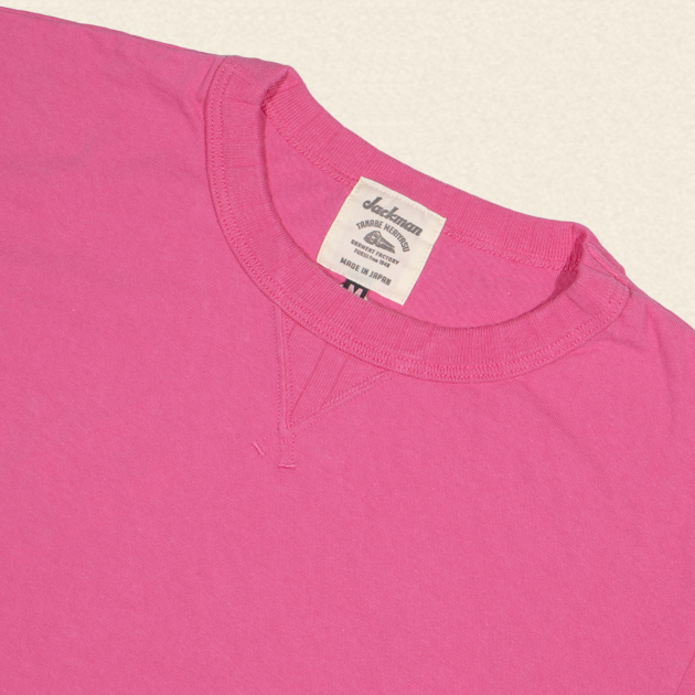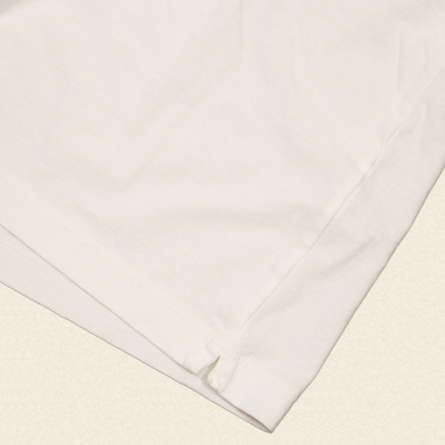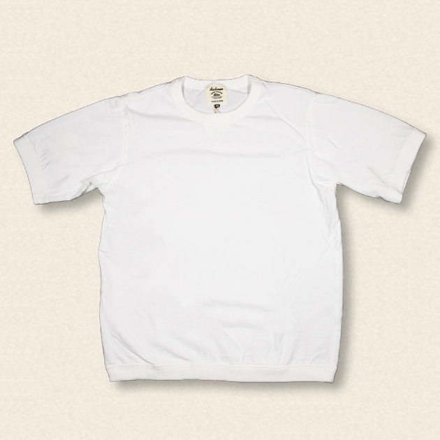 ドライ感と適度な厚みのあるアメリカンコットンを使用し、首元や袖口、裾にリブが配置されたデザインは一般的なTシャツとは異なるスウェットのようなデザインが魅力的な1枚です。