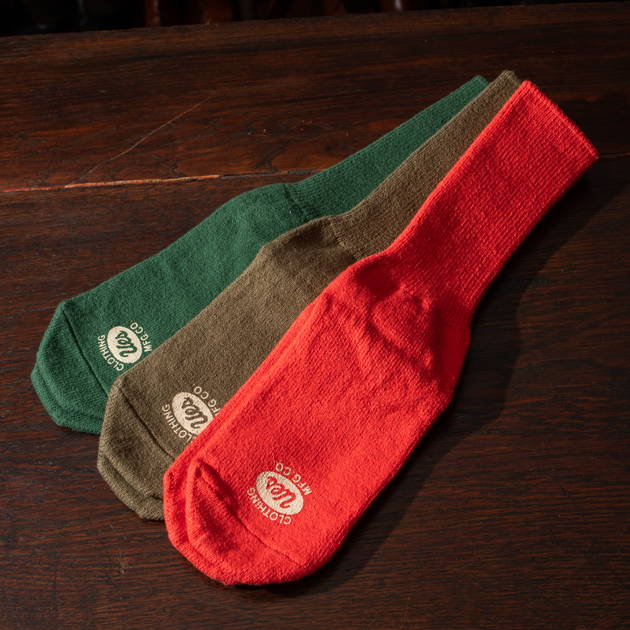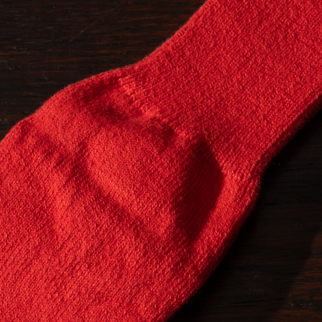 旧式の編み機で大きく編んでから、水洗いの後タンブラー乾燥によりグッと縮めることで、編み目が詰まったしっかりとした製品に仕上がっており、何足か揃えてローテーションすれば数年持つことでしょう。
