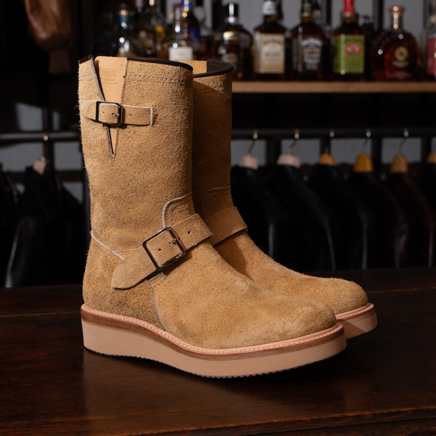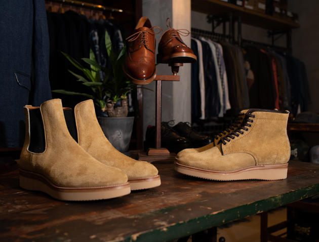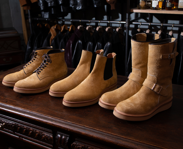 昨年、サンドベージュ色のスエード革が欲しいというご要望をいただきましたお客様が多数いらっしゃいましたが、皆様同じご意見だったのが、現在日本で流通しているブーツやシューズのスエードレザーは薄すぎてチープであるという御意見でした。