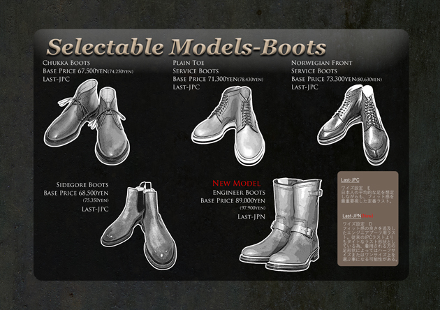 今回の受注会ではシューズタイプ・ブーツタイプで全12モデル。