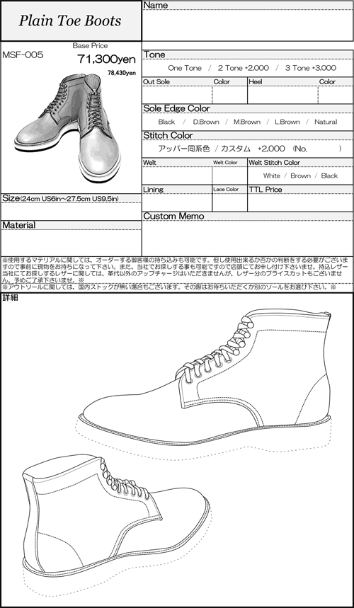 MSF-005 Plain Toe Bootsベース
