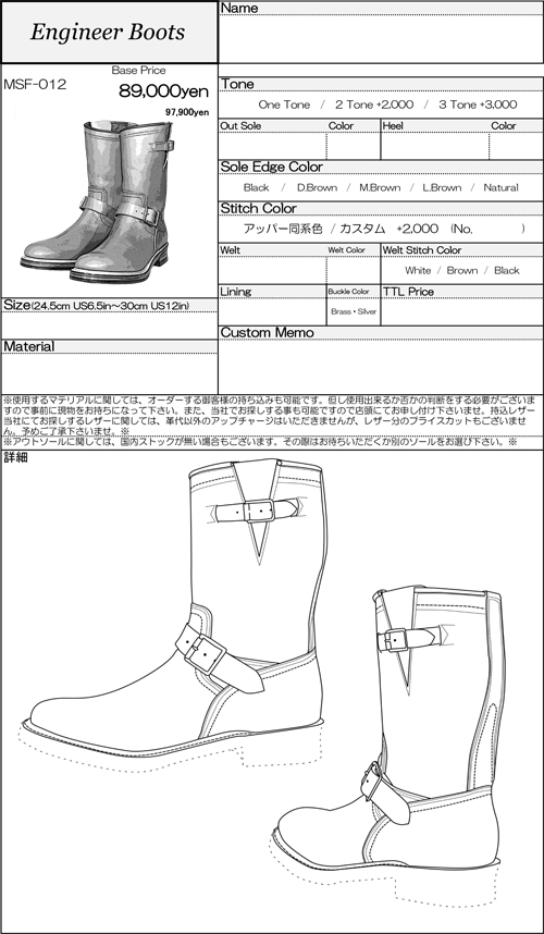 ENGINEER BOOTSオーダーベース価格89,000円