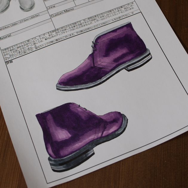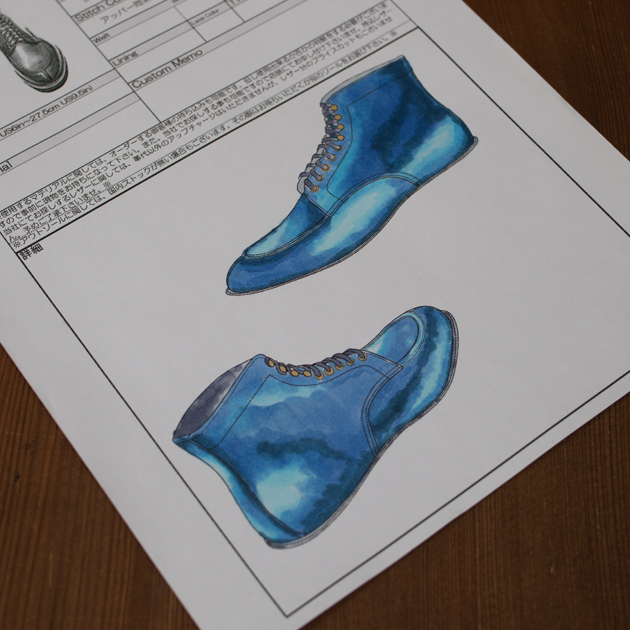 また、カタログに掲載しきれないほどカスタムオーダーの範囲が広いのもMUSHMANS Footwear受注会の良いところ、でもあり難しいところです。