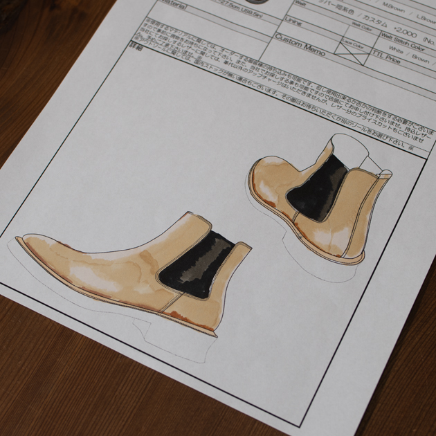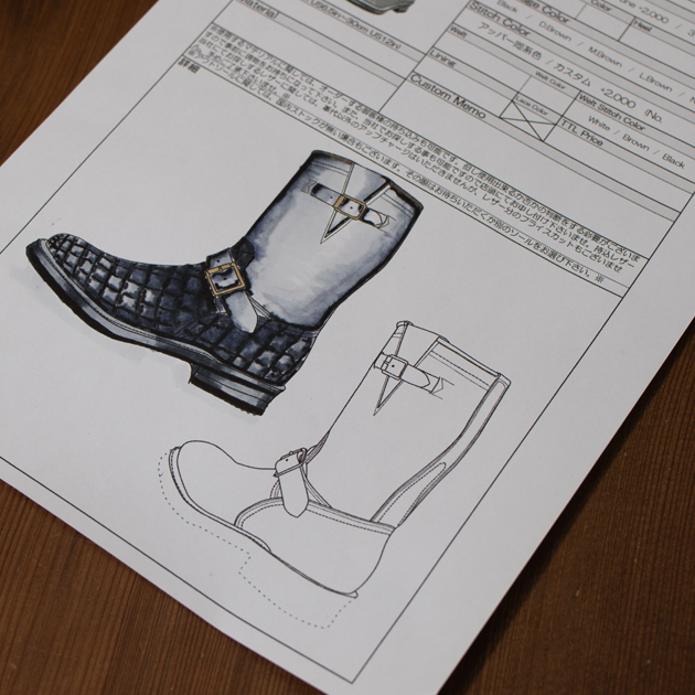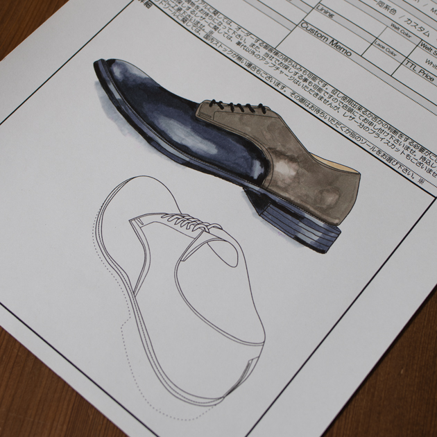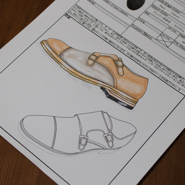 例えば、コバの張り出し寸法だったり、ヒールのカーブ形状、仕上げの光沢をどこまでやるか?とか、多岐にわたってオーダーできる。