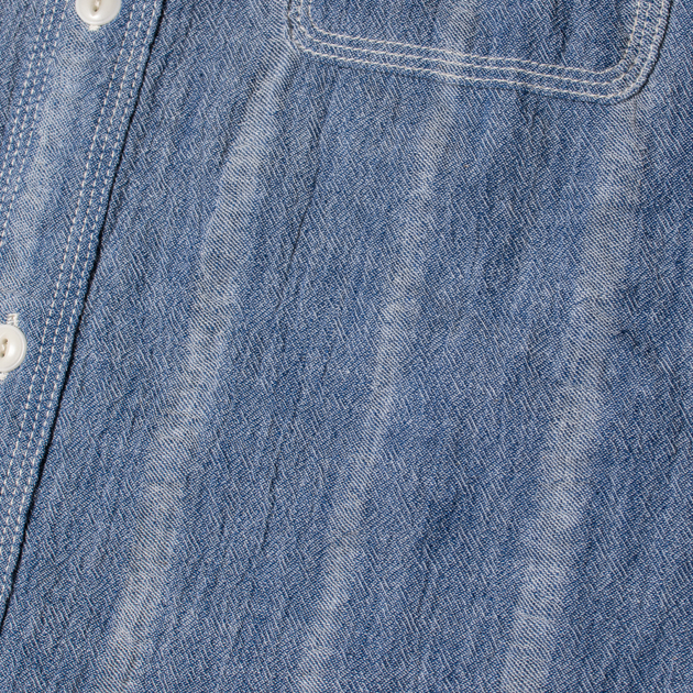 さらに回転数を上げた糸を強撚糸を使い、より激しいタテ方向のシボが現れた楊柳(ようりゅう)と呼ばれる生地もありますが、 UESでは撚り回転数を調整し、ナチュラルなシボ感を出しています。