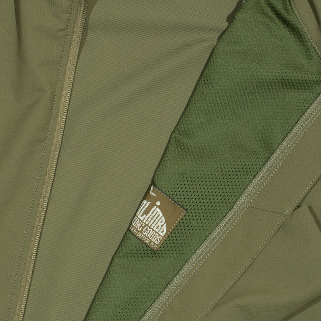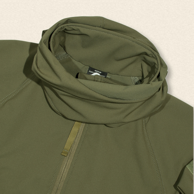軽く、吸汗速乾加工したポリエステル素材を用いており、ある程度の伸縮性と防風性能が特徴で、最先端のアウトドアギアと言えるアイテム。