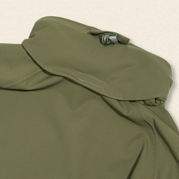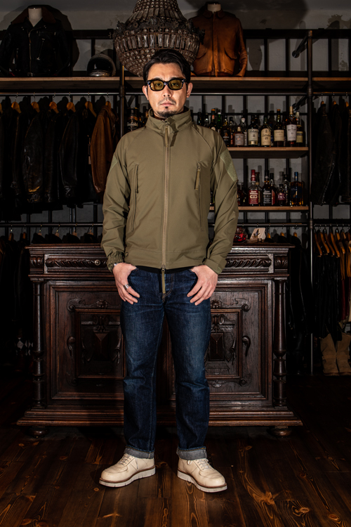 昨今ではソフトシェルジャケットとも呼称されるこのジャケットは、登山などのアウトドアシーンで活躍するライトアウター。