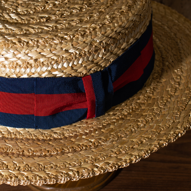 グログランに近い生地感で光沢があり、高級感を演出しています。カンカン帽と言えば、ブラックのテープと定義されておりますから、間違いない組み合わせですね。