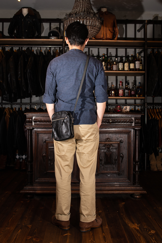 このポーチの容量は2.5Lと、先に御紹介した新作ショルダーバッグと0.5Lの違いしかございませんが、この0.5Lが大きな違いとなっており、よりコンパクトに使いたい方には最適なサイズ感です。