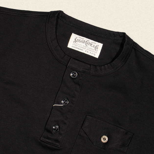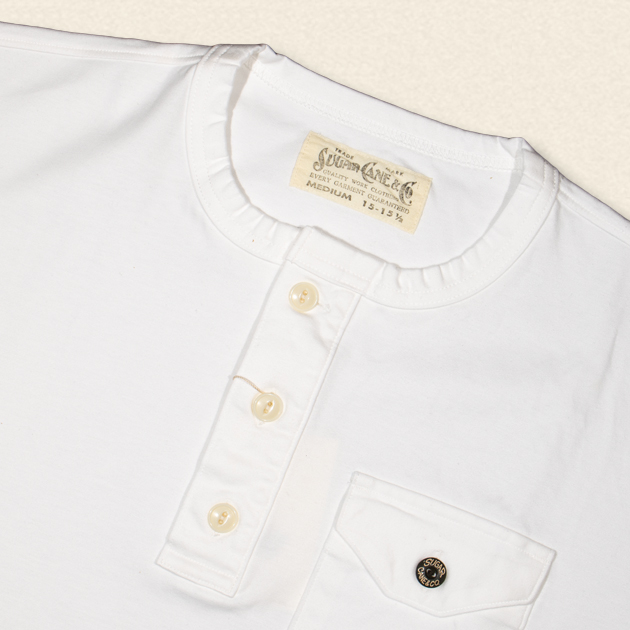 題名にもございます、マハラニコットンを使用したヘンリーネックTシャツ。