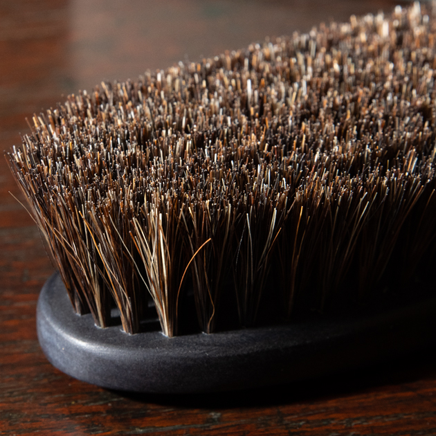ブラシ部には、ブラシ職人が目利きした最適なハリとコシがある馬毛を選定して使用されております。