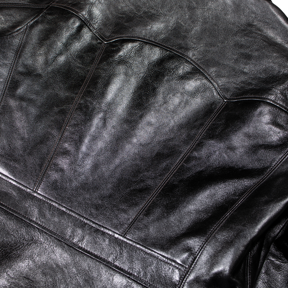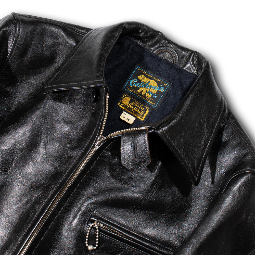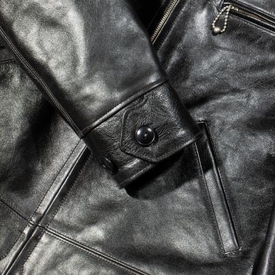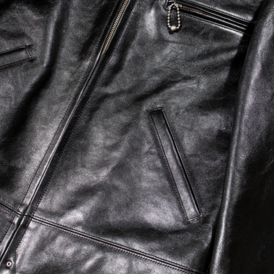 アメリカ小売大手企業のシアーズ・ローバック社が1930年代にプライベートブランドとして生産した"HERCULES"の襟付きスポーツジャケットを元に馬革素材の仕上げ方法と型紙に拘って制作。