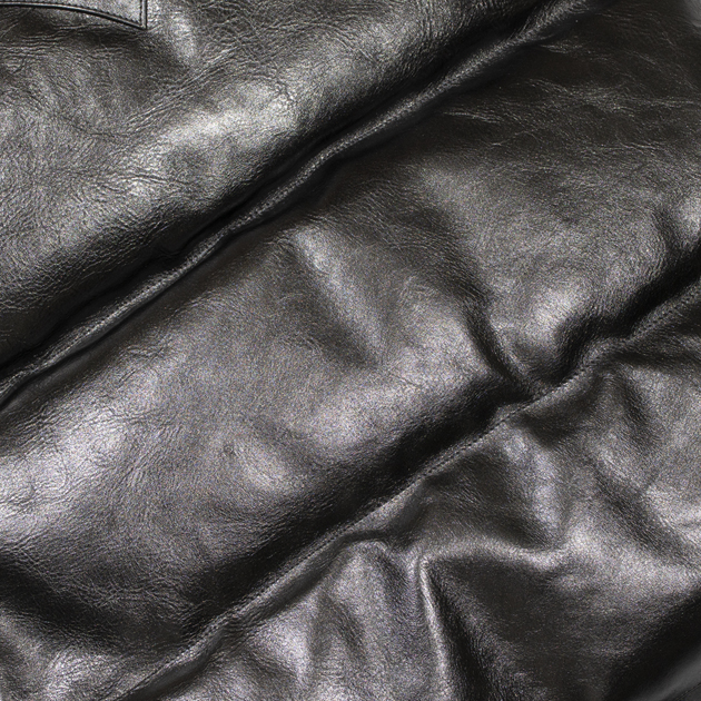 革の厚みを1.0mm、ステーキングを施す事でダウンベストに使用可能なレベルまで柔らかく仕上げた。