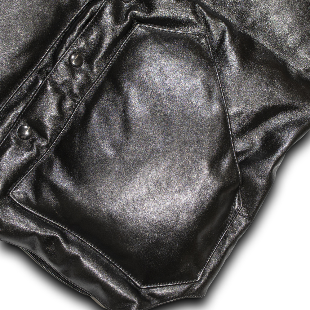 革の厚みを1.0mm、ステーキングを施す事でダウンベストに使用可能なレベルまで柔らかく仕上げた。