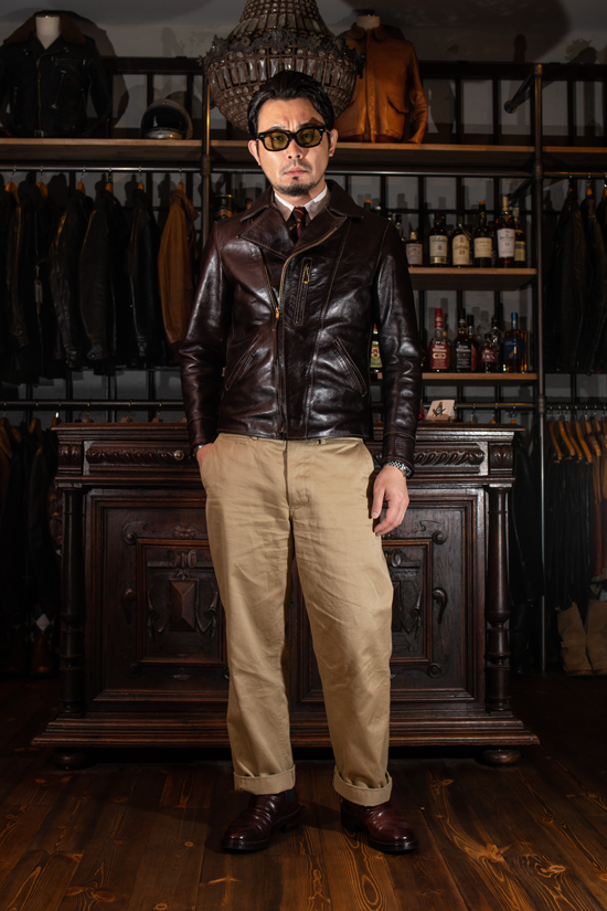 深夜にレザージャケットをオーダーする、なんだか怪しい雰囲気を併せてお楽しみくださいませ(笑)
