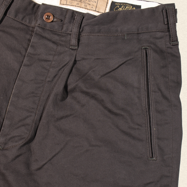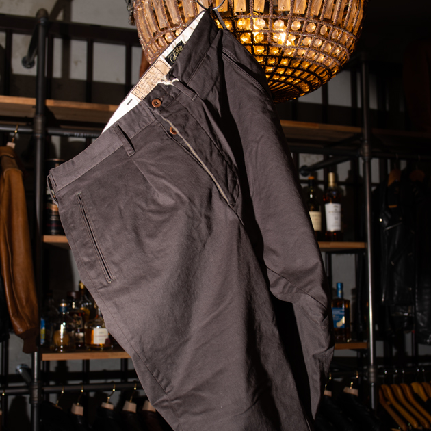 使用するマテリアルはコットンチノクロスであるものの、ポリウレタンを2%だけ配合させる事によって驚異のストレッチ性能を与えております。