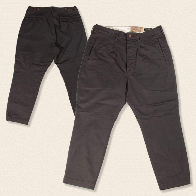とは言いましても、ヴィンテージでみられるリアルなジョッパーズは、これ以上にワタリ幅が広く、さらにテーパードも急激についているものでございますが、今回ご紹介のアイテムに関しましてはそのシルエットを現代流にアレンジしているものです。