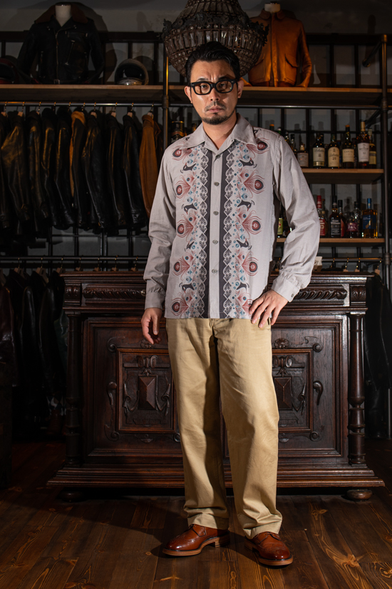 ハワイアンシャツとは異なる領域のプリントシャツであり、エレガントなオーラを演出しておりますね。