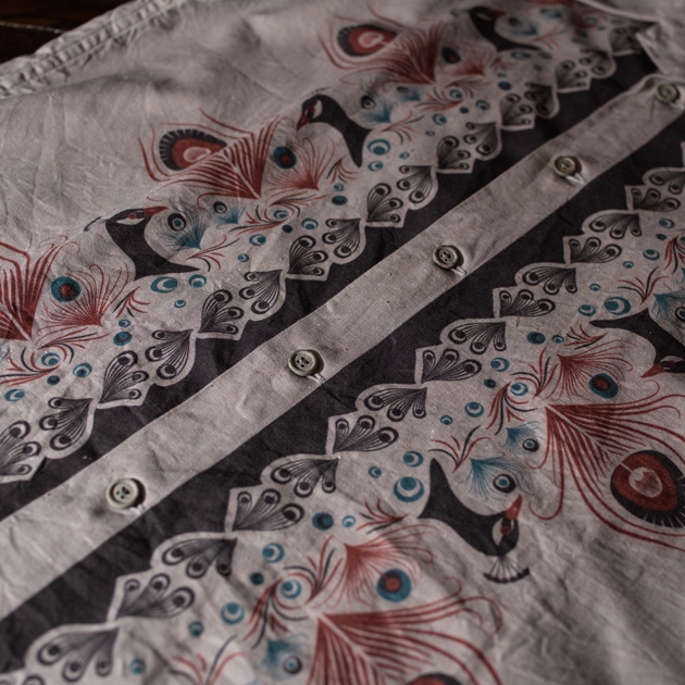 前面にプリントを施し、背面は無地という構成となっておりますので、コーディネートも容易なプリントシャツでございます。