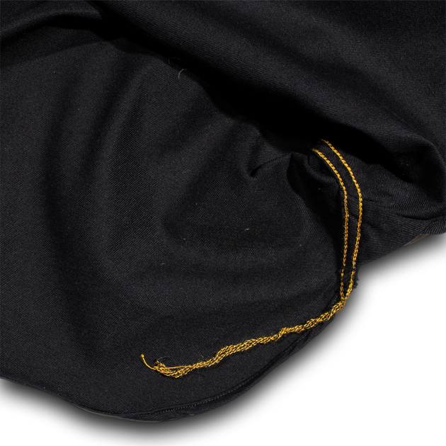ちょっとした拘りポイントですが、ボディの巻縫いチェーンステッチの裏糸にはゴールド色の糸を使用し、チームカラーを演出。