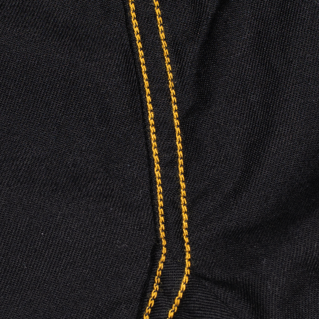 米国のワークエアシーンの成長期にみられた仕様で、大量生産する為に考案された合理的な仕様で、裾からチラッと見えるゴールド糸が良い感じです。