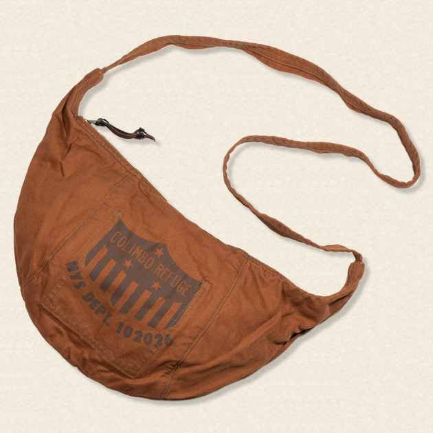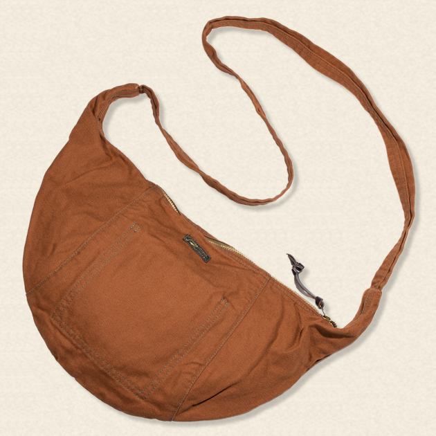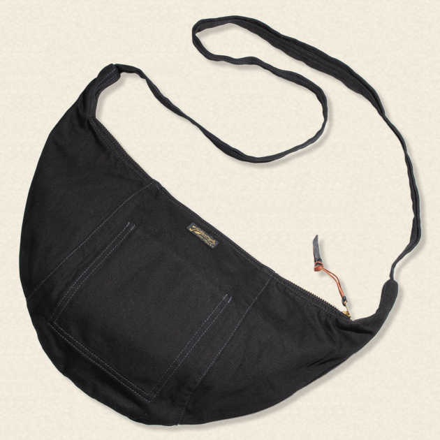 ブラックはコットンツイル生地、キャメルブラウンはコットンキャンパス生地を使用した半月型のショルダーバッグ。