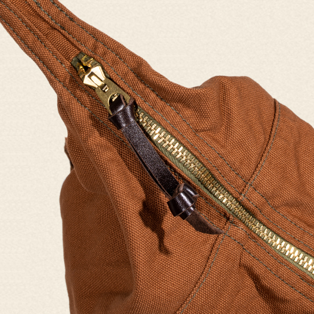 コの字WALDESジッパーを使用し、レザーの引手が付いております。