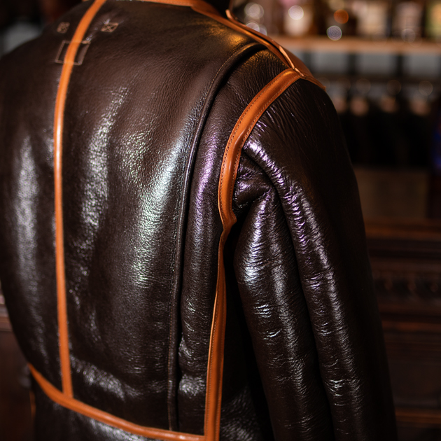 羊の毛皮を裏返した"シアリング"製で、その毛皮は厚さ1/4インチの刈り込みと決められておりました。