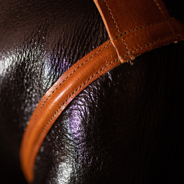 ホースハイドよりも肉厚なステアハイド、重さは若干増すものの、その存在感は唯一無二の物。