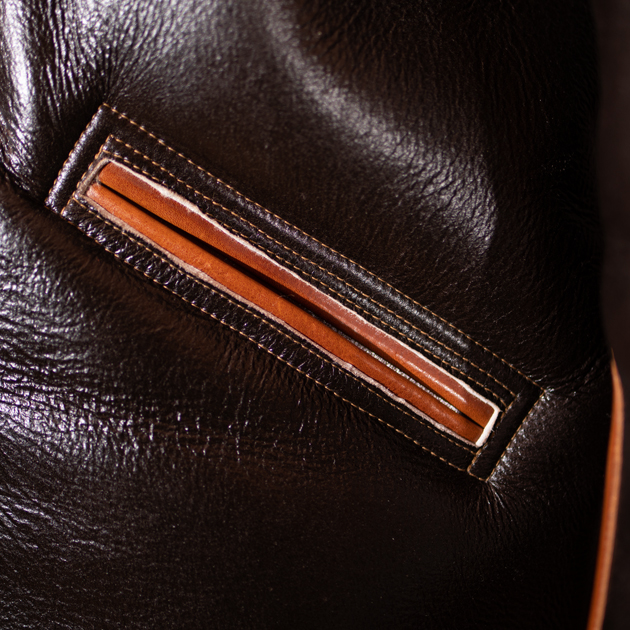 B-3はヘヴィーゾーン用フライトジャケットである為、このようにボディーに穴を空けてポケットを作ってしまうと冷気の進入のもととなってしまいます。だからあのようにパッチポケット構造になっているのでしょうが、このB-6はインターミディエートゾーン用のフライトジャケットという事で、B-3ほどストイックに考えなくてもよかったのだと推測されます。