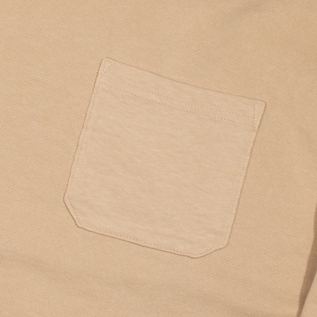 SWEAT地を用いてポケットを付けてしまいますと、ポケットが盛り上がってしまうところですが、天竺ならば自然に張り付きます。
