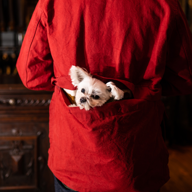 この位の体格の小型犬だと、生地の張り感がありホールドされるので安心できるようですね。