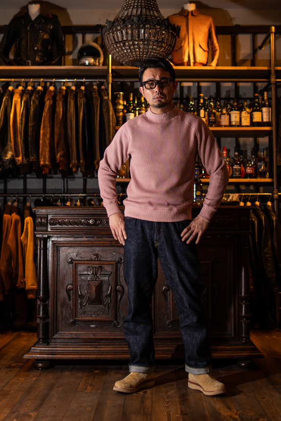 最後はOLD ROSEカラーを着用してみましょう。この絶妙に朽ちた発色が最高にカッコイイですね。