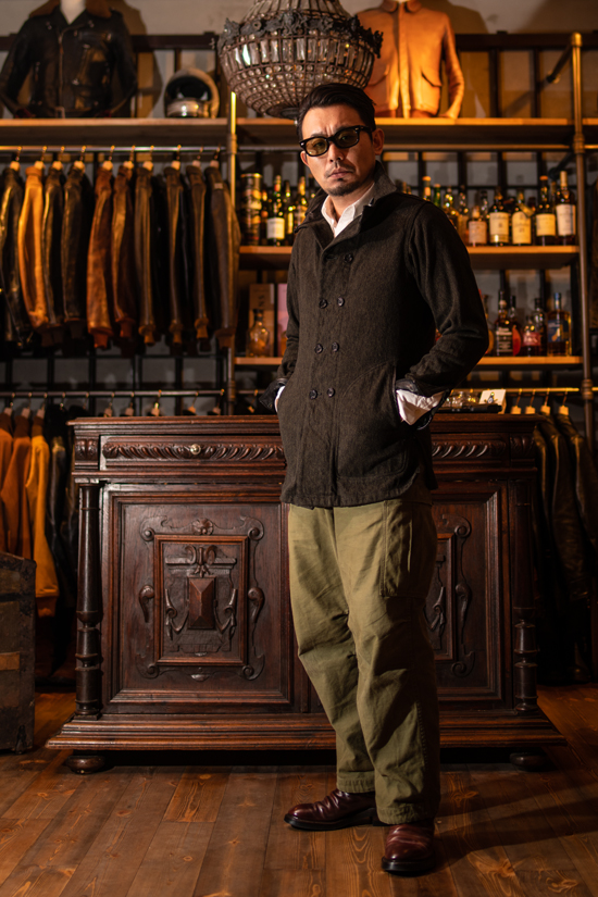 インナーにはMUSHMANSオリジナルB.D Shirtsを着用し適度なサイズ感。