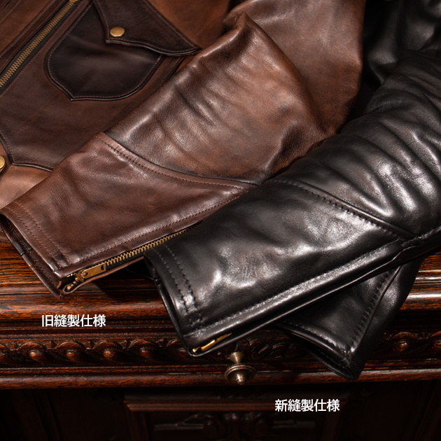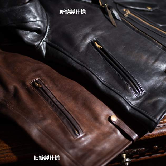 これまでのDAREDEVILにおいてレギュラーレザーとして採用してきたホースハイドは、DAREDEVILスペックの良質な素材を入手する事が困難となった為に、国産カーフレザーへと変更。