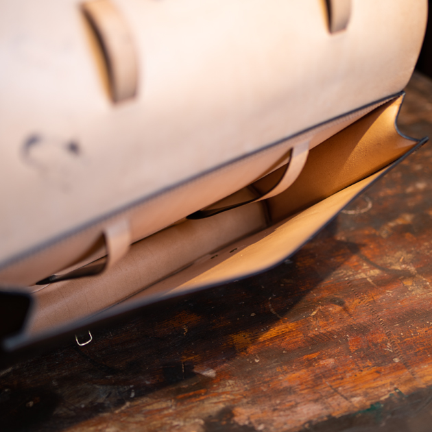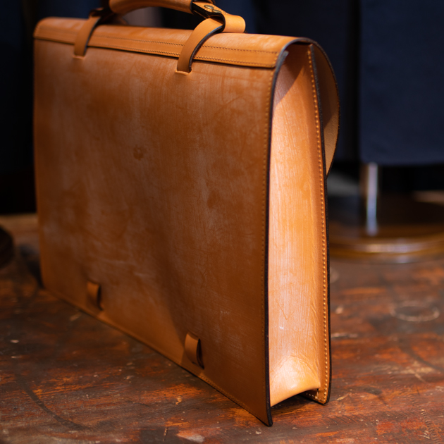 そういった中で以前リリースいたしました【Leather Tote Bag Nero/Cognac】は大変ご好評いただきましたが、より重厚な雰囲気を求めるお客様も多くいらっしゃる中で、ビジネス半分プライベート半分で使い切れる仕様のBAGを考えておりました。