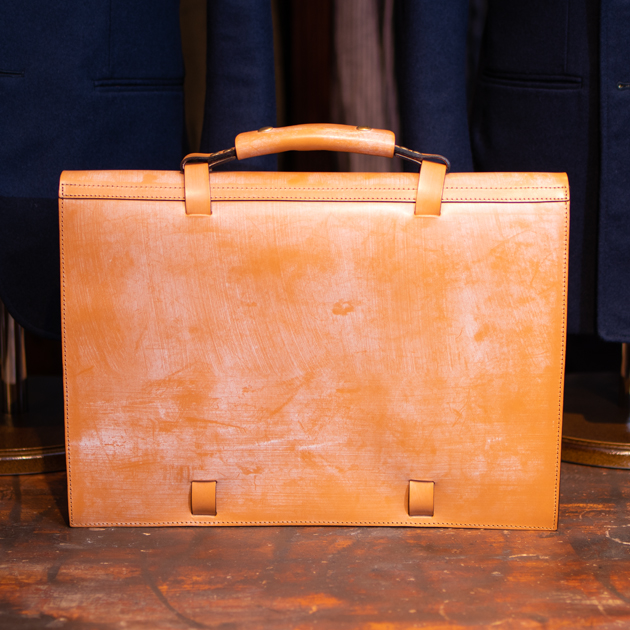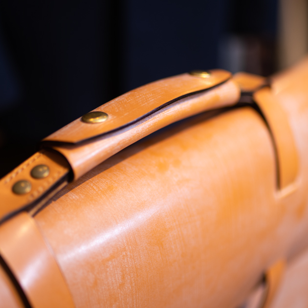 その為このようなサイズの鞄に使用するに適したマテリアルであると言え、長年に渡って型崩れしない堅牢さをも持っております。